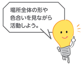 思いついたことがどのように実現できるか、試行錯誤をくり返し、表現の構想を練ります。 |