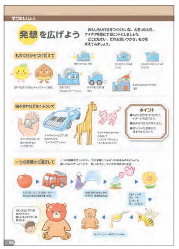 発想や構想の力が身につきます。発想や構想の力は人工知能の時代になっても必要な力です。イメージの広がりを大切にしてきた開隆堂の図畫工作教科書は完成作品だけではなく発想?構想の力が働いている場面を多く掲載しています。