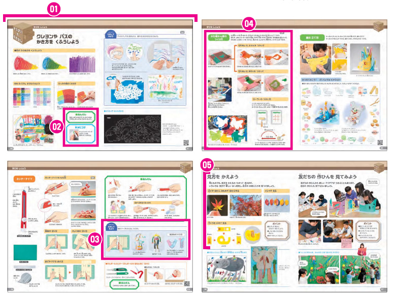 ためしてみよう(Let's Try)では、用具の使い方を知るだけではなく、実際に手を動かしてつくってみることで、生きた技能として身につく構成になっています。 |