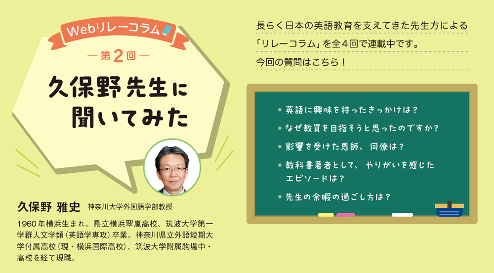 英語學習者として、影響を受けた恩師はたくさんいます。最初に強いインパクトを受けたのは、高校1年生の時に英語B(読本)を擔當して下くださった新免裕一先生です。先生は教科書をほとんど使用せず、短編小説や雑誌などの「生の教材」を使用されました。1學期後半には小泉八雲のMujinaを読み、夏休みの課題図書はE. CaldwellのSnackerでした。2學期にはR. DahlのLamb to the Slaughterをゾクゾクしながら読んだことを今でも鮮明に思い出します。 大學では、英語學を安井稔先生?安井泉先生?中右実先生?原口莊輔先生に、音聲學は島岡丘先生に、英語科教育法は淺野博先生にご指導いただきました(不勉強な學生だったので、先生方の偉大さを実感できたのは大學を卒業して教壇に立ってからでしたが…)。多くの先生方にお世話になりましたが、足を向けて寢られないほどの恩を受けたのは、卒業論文を指導して下さった安井泉先生です。先生と出會わなければ、今の私はありません。 筑波大學附屬駒場高校(通稱、筑駒)で教育実習をさせていただいた際には、指導教官の中村豊先生からも大きな影響を受けました。先生は學校文法や英語學の大家で、旺文社の參考書や大學入試問題正解の執筆者でもあり、愛読書はR. QuirkのComprehensive Grammarでした。 初任校である神奈川県立外語短期大學付屬高校(現在の橫浜國際高校)では、守屋宣裕先生から、教師としての英語力の鍛え方について強い影響を受けました。先生は英作文?語法の大家で、J. Archerなどのペーパーバックを読みながら、切れ味のよい表現を収集されており、その方法を一生懸命に真似しました。 |