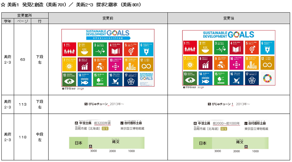 令和3年度に供給いたしました教科書につきまして,下記のように內容を変更すべき箇所がございました。先生?児童?生徒の皆さまに,大変ご迷惑をお掛けいたしますこと,深くお詫び申し上げます。 また,下記のほかにも,記述內容をよりよくするための修正もおこなっております。 詳しくはこちらをご參照ください。
