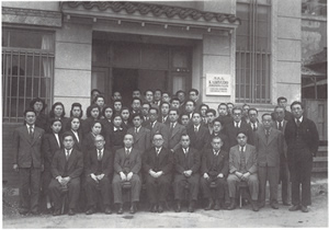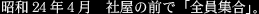 昭和24年4月 社屋の前で「全員集合」。 |