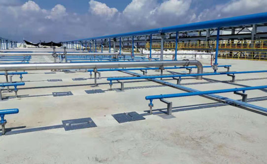 配套500臺大通氣量旋流曝氣器;新建項目,池頂鋼筋混凝土結構,土建預留橫向長縫和少量孔洞,可實現曝氣器的在線檢修安裝。